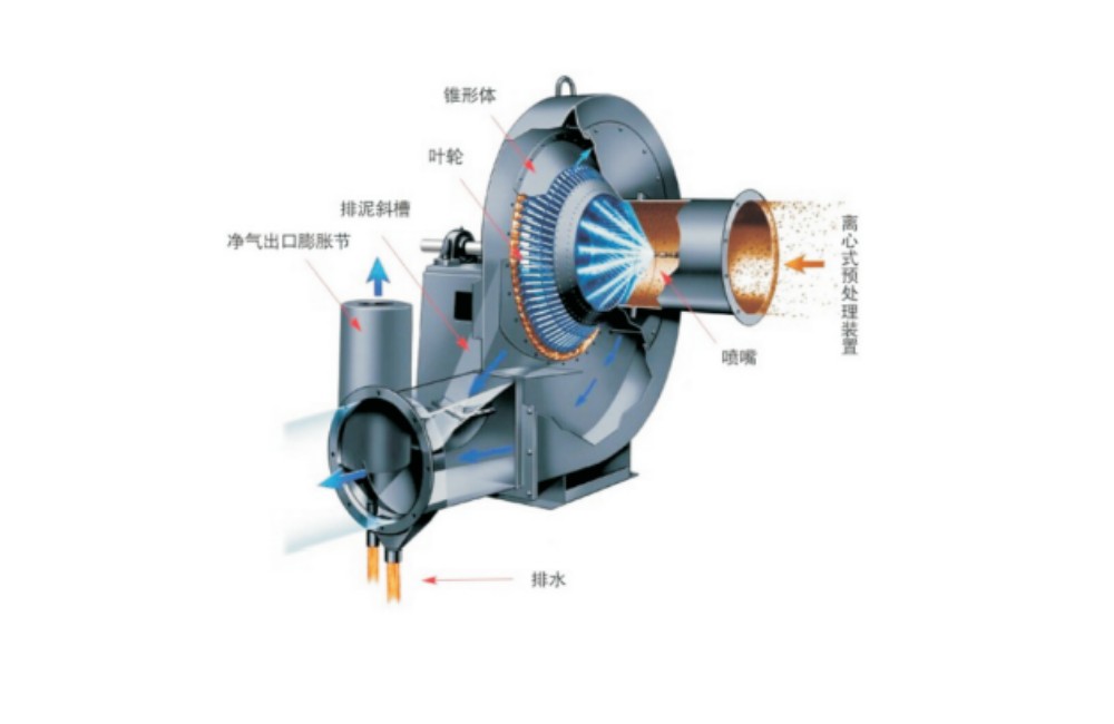 D Rotoclone 專用于收集高濃度微細粉塵顆粒。該型濕式除塵器優點在于收集到的粉塵非常容易從水中分離出來,泥漿可反復處理也可直接排入逆水槽。D型W Rotoclone濕式除塵器裝有整體式濕式離心式預處理裝置更為有效,大大減小了對Rotoclone的符合,收集到的粉塵與水的混合體通過裝置的底部灰斗直接排走。D型濕式除塵器有7種規格,可處理風量1000-14500CFM.