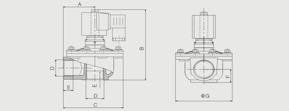 | 電磁脈沖閥型號(hào) | A | B | C | D | E | F | G |